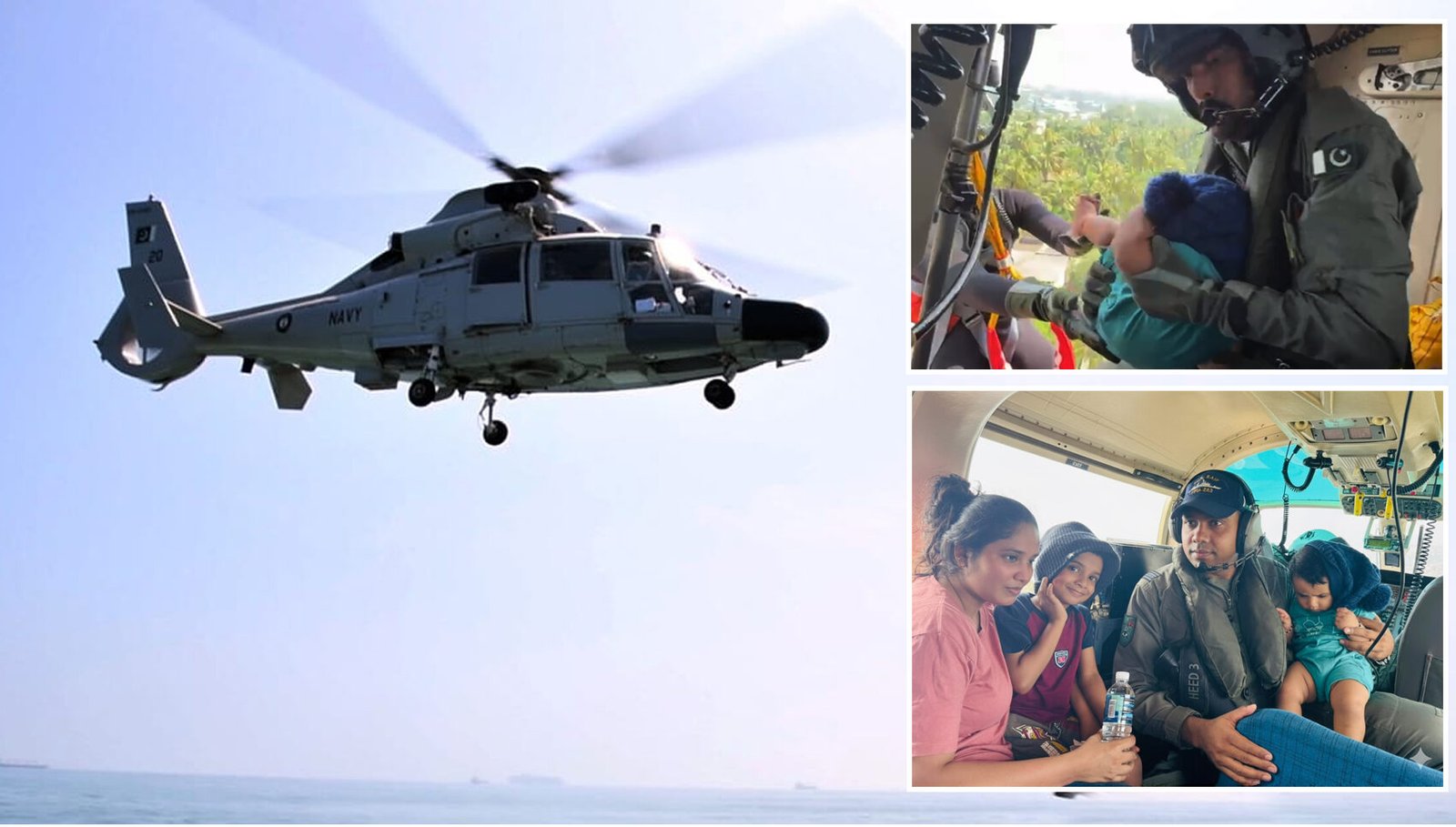 The Pakistan Navy helicopter, deployed from the warship PNS Saif docked in Colombo, reached the flooded neighbourhood after receiving an emergency call.