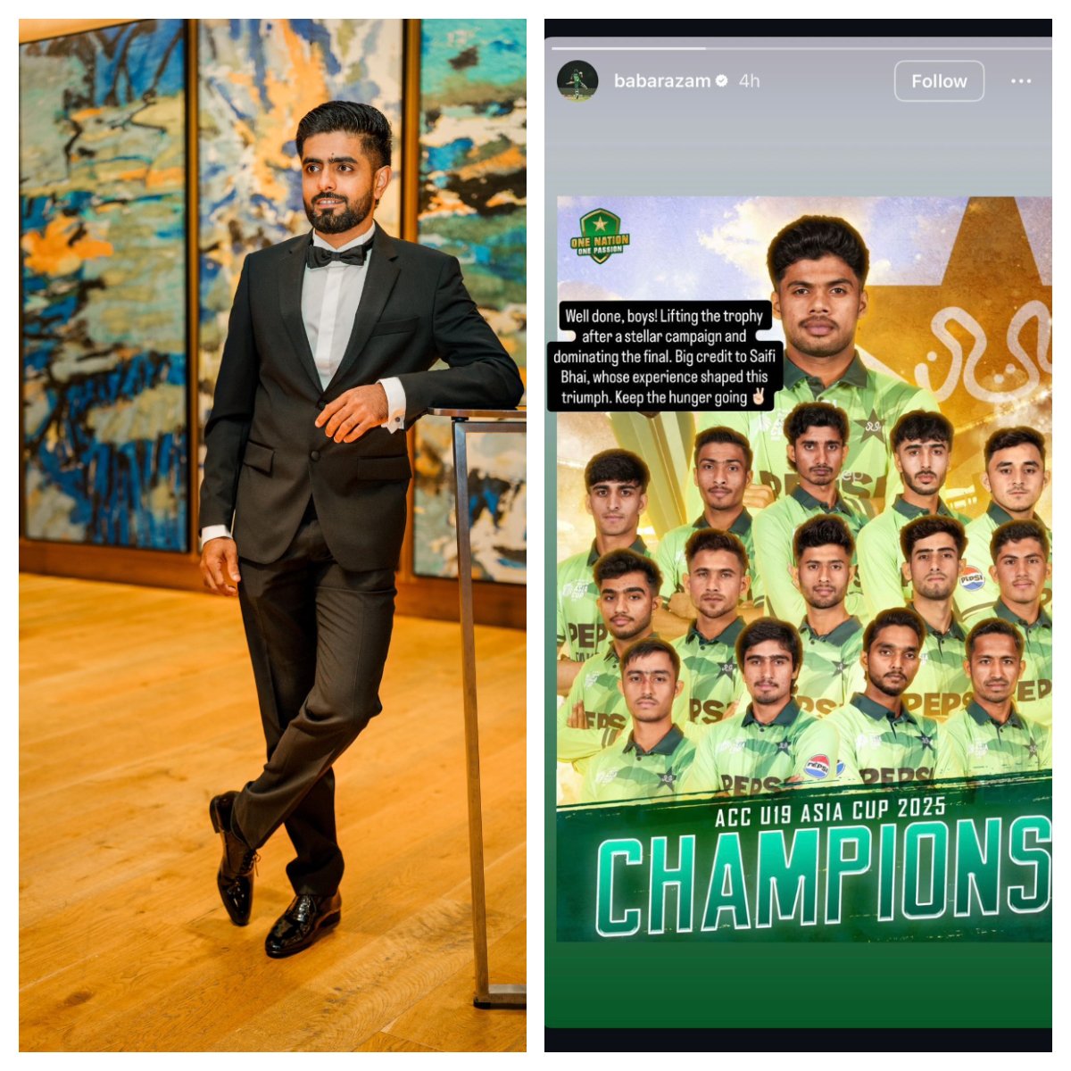 Babar encouraged the Under-19 players to remain hungry for success and continue working hard as they move forward in their careers. He reminded them that winning at the junior level is only the beginning and that consistency, discipline, and patience are key to making the jump to senior cricket.
