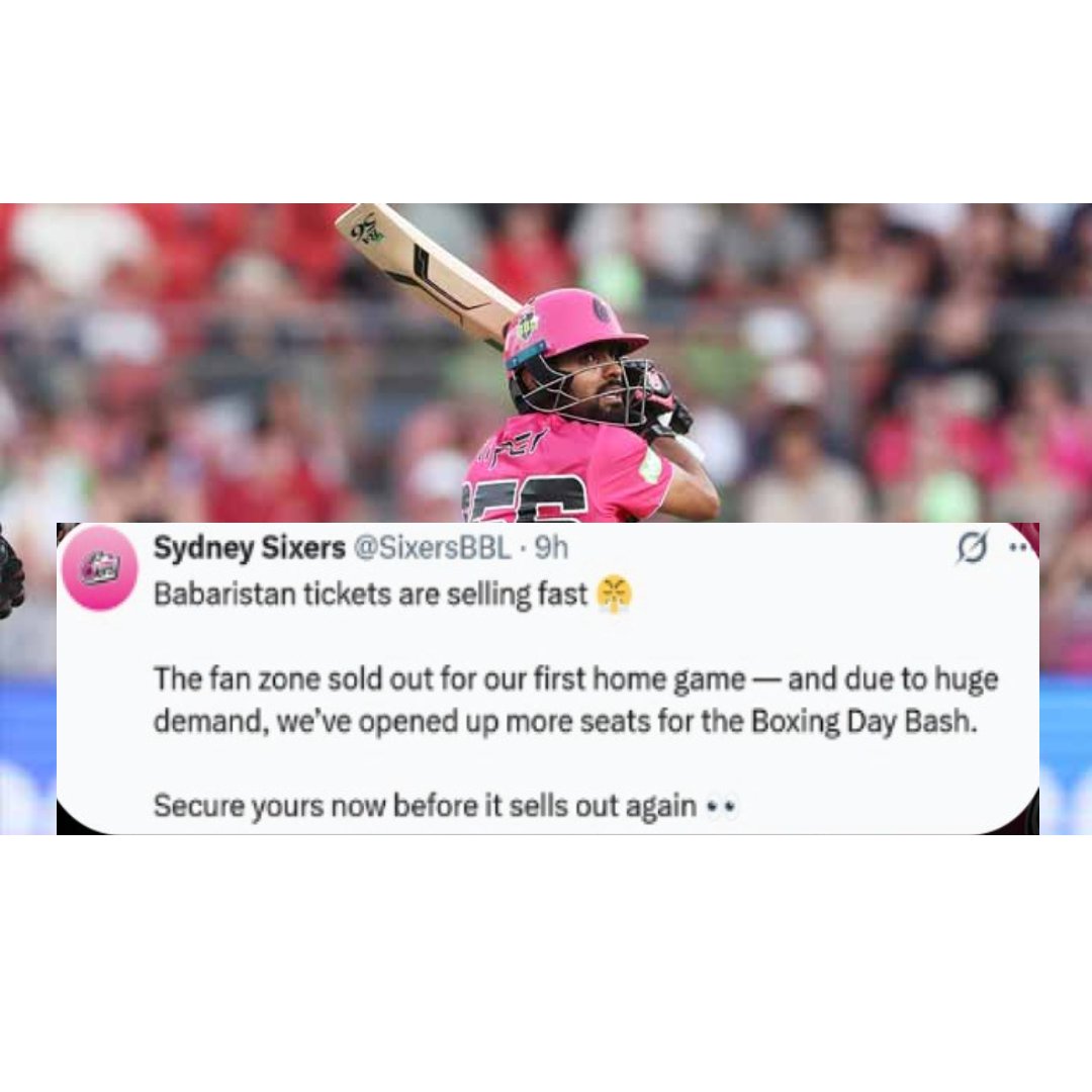 Babar Azam’s popularity continues to cross borders as the special “Babaristan” fan zone was completely sold out for the Sydney Sixers’ first home match of the Big Bash League (BBL). The announcement was made by the Sydney Sixers themselves, highlighting the massive excitement surrounding the Pakistani cricket star.