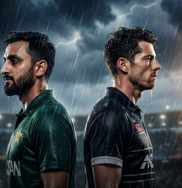 Rain interrupted play during the Pakistan vs New Zealand fixture after Pakistan elected to bat first, halting momentum early in the contest. Dark clouds gathered soon after the toss, and steady showers forced players off the field as ground staff rushed to cover the pitch and square.