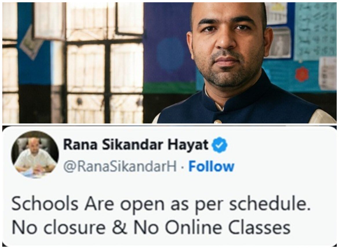 Rana Sikandar Hayat dismissed rumors circulating on social media that schools might be shut down due to possible energy saving measures. He said both public and private schools will follow the regular academic schedule and continue in person classes.