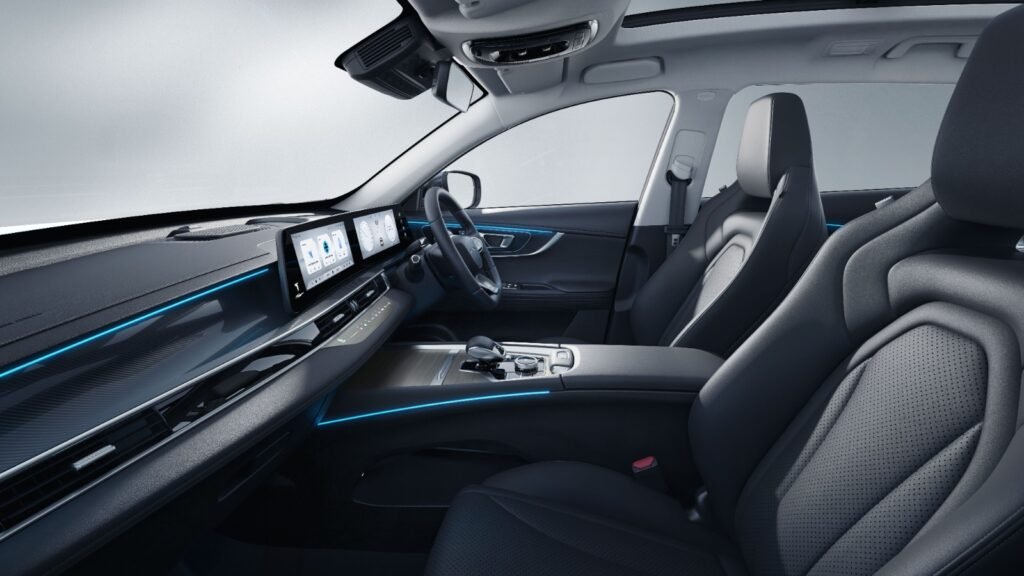 Inside, the vehicle offers a refined and intuitive experience, with a 24.6-inch dual curved display powered by the Snapdragon 8155 chipset, an 8-speaker Sony audio system, ambient lighting, and a panoramic sunroof. Heated and ventilated front seats, driver memory function, and dual-zone climate control with N95 filtration ensure consistent comfort.