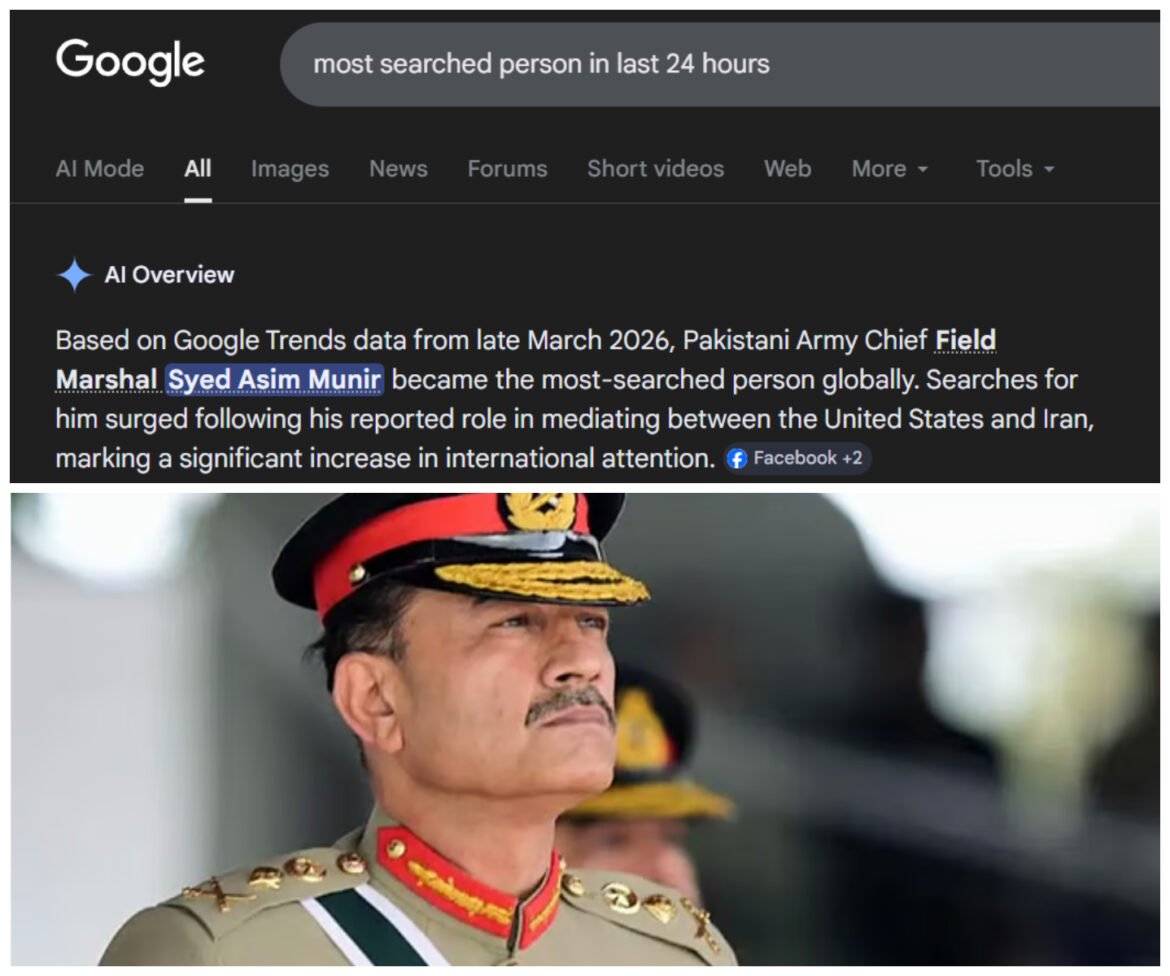 This is a historic moment for Pakistan, as it is rare for a Pakistani leader to top global Google searches. The surge reflects growing worldwide curiosity about Asim Munir and Pakistan’s important contribution to de-escalating the US-Iran conflict.